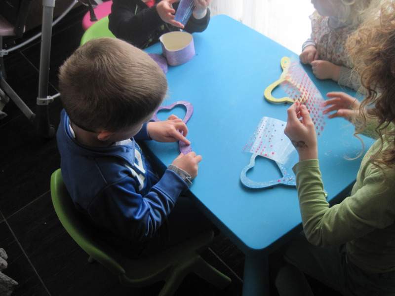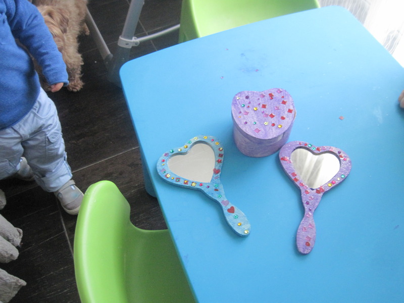 ce matin nous avons continué l'activité cadeau fetes des meres de l'asso avec mari-josé et bianca